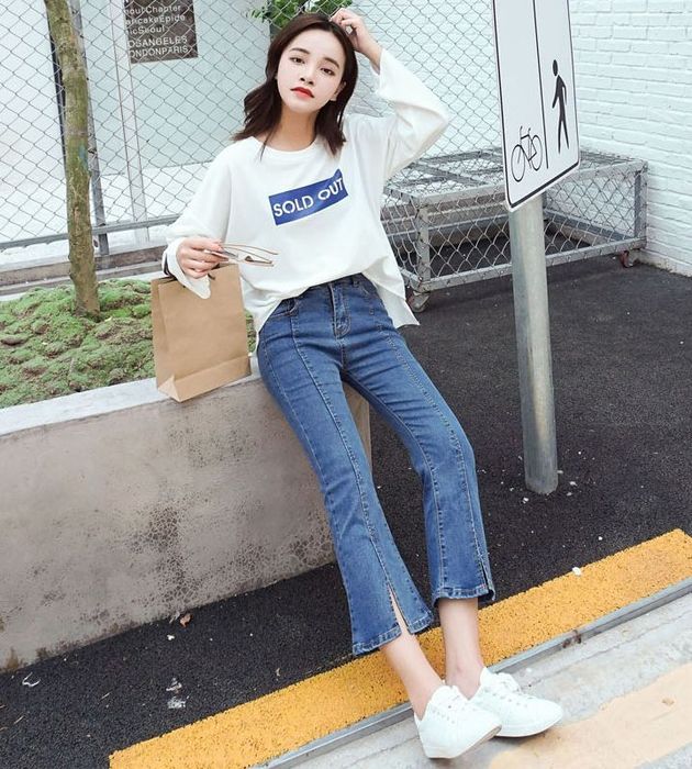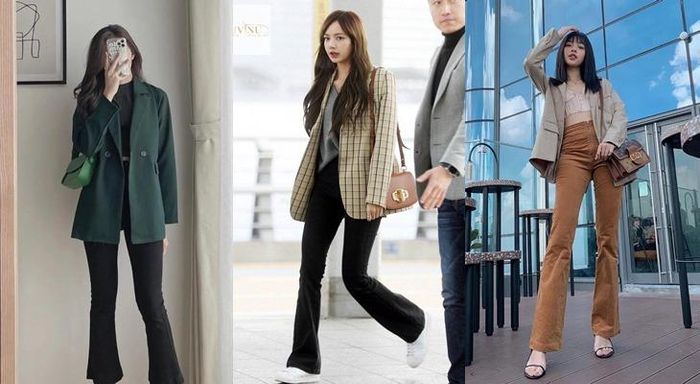 Flare pants paired with a sweater is one of the most popular outfit combinations today. Not only does it elevate the elegant and classy beauty of women, but it also provides a sense of comfort and ease of movement. Flare pants with their wide, long, and flared silhouette create a comfortable wearing experience. Especially when paired with a sweater, this combination brings harmony and balance to the outfit. The sweater features a simple and refined design, offering warmth and comfort to the wearer. When combined with flare pants, the outfit becomes fresh and appealing.