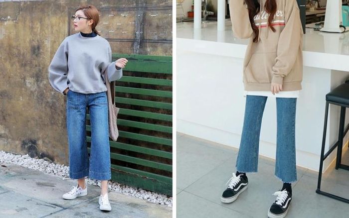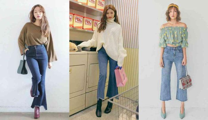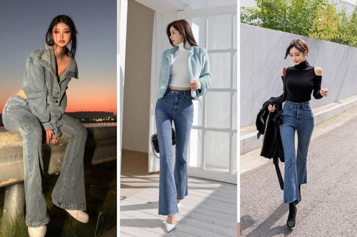 As the cold season approaches, knit sweaters are essential items in every girl's wardrobe. The designs often chosen to pair with flare pants are turtleneck or cropped knit sweaters. Additionally, you can opt for oversized V-neck knit sweaters for a more youthful outfit. Pay attention to the shoulder design of the sweater, avoiding low-neck sweaters if you have a large bust as it can make your upper body look bulky. Choose fitted sweaters that are neither too loose nor too tight, as overly tight sleeves can make your arms look unattractive.
