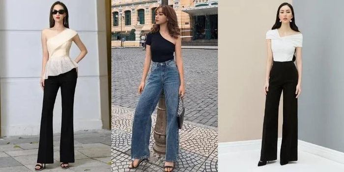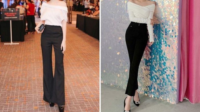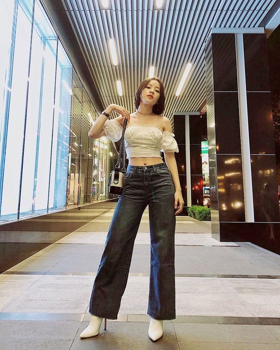 Wondering what to wear with flare jeans? The answer is definitely an off-shoulder top. This is an incredibly unique design, both feminine and alluring yet still edgy and youthful. When wearing this outfit, you can flaunt your slender shoulders while maintaining a casual vibe. The off-shoulder top hugs the upper body, creating a sexy and enticing look. Paired with flare jeans, the contrast between the top and bottom creates balance and harmony for the entire outfit. To add more allure to this ensemble, one can opt for off-shoulder tops with tight-fitting materials, accentuating the waist and body curves. Meanwhile, flare pants can be chosen in colors like navy blue, black, or white to exude elegance and sophistication.