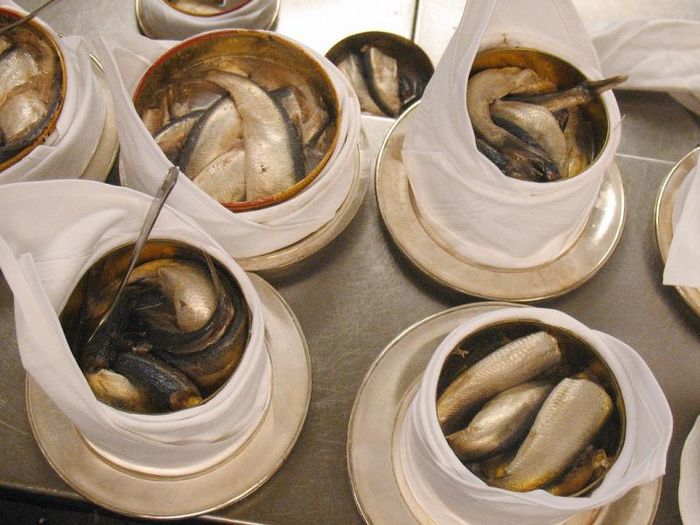 Surströmming is a traditional dish of Baltic Sea herring lightly salted in Swedish cuisine, dating back at least to the 16th century. Herring fermentation is an age-old dish in European cuisine, with the oldest archaeological findings of the herring fermentation process dating back 9,200 years from southern Sweden today. Known as strömming in Swedish, Baltic Sea herring is smaller than Atlantic herring, found in the North Sea. Traditionally, strömming is defined as herring caught in the shallow waters of the northern Baltic Sea, off the Kalmar Strait. Herring used for catching is captured just before spawning in April and May.