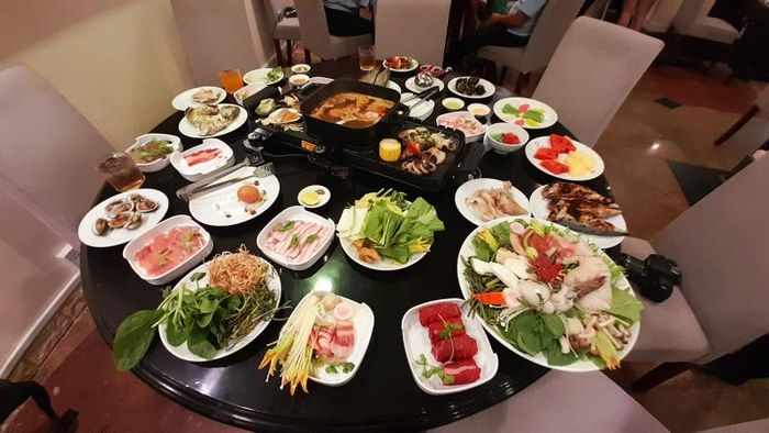 Grill & Steam Cuisine Hub is considered the pinnacle of culinary convergence, specializing in hotpot and barbecue dishes with flavors from famous countries like Korea, China, Thailand, etc. The restaurant's menu features over 50 grilled dishes and 4 enticing hotpot flavors such as tomyum hotpot, bulgogi hotpot, four-province hotpot, and crab paste hotpot. Moreover, you also get free access to the buffet line and dessert buffet with over 10 premium European-style ice creams. The space here is designed to be luxurious, modern, and extremely comfortable, coupled with a polite, professional staff team, which is a big plus for the restaurant. The charming decor is ready to capture beautiful moments with your loved ones and friends.