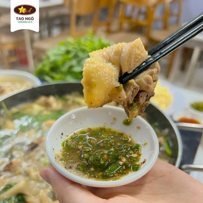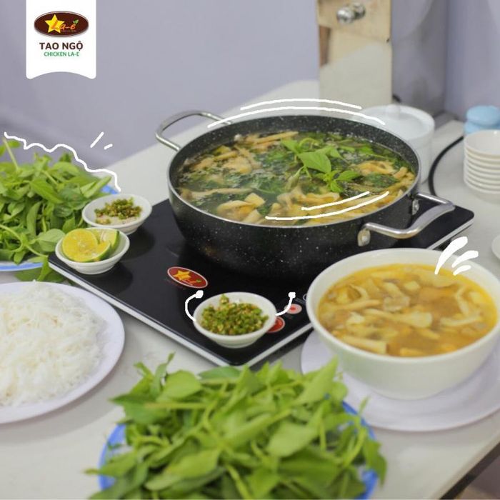 As the original restaurant is in Dalat, there's no need to argue too much about the deliciousness of the restaurant. The broth is fragrant and rich in flavor. There's a bit of fatty chicken but extremely enticing when eaten with the la-e leaves. Especially, the la-e leaves of Chicken La-E - Authentic Chicken Hotpot are also transported from Dalat, so they are fresh and green. To clearly feel the taste of the la-e leaves, when eating, you just need to dip them in the boiling hotpot broth. Additionally, other chicken dishes such as lemongrass chili chicken, fish sauce fried chicken, and chicken heart stir-fried with sponge gourd are also worth experiencing.