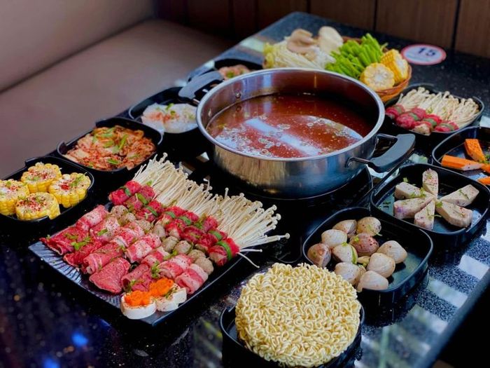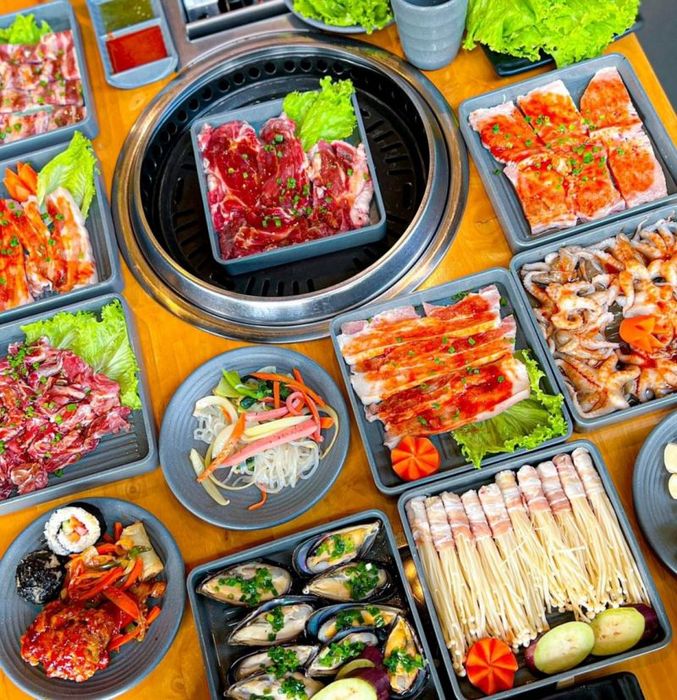 H BBQ Buffet is a popular Korean-style buffet restaurant in Biên Hòa, Đồng Nai, offering a fun dining experience with both grilling and hot pot options. The spacious, cool, and stylishly decorated space is perfect for a meal with friends. As soon as you step in, the staff will assist you in choosing the right hot pot broth, grilling items, and hot pot ingredients. You can also sample the restaurant's eight delicious dipping sauces to complement your grilled dishes. Korean BBQ is incomplete without fresh vegetables – a bite of lettuce wrapped around grilled meat with a bit of kimchi is simply irresistible.