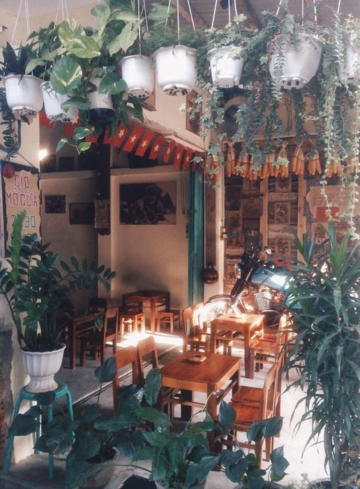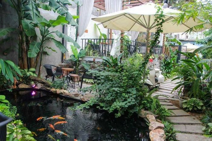 Tucked away in a small alley on Nguyen Van Thoai Street, Doll Coffee remains a hidden gem, attracting visitors for its serene and peaceful atmosphere that's hard to put into words. The cafe is surrounded by lush greenery, creating a cool and refreshing ambiance. As you sip your coffee, you can enjoy the sight of colorful Koi fish swimming happily in the pond, adding to the tranquility of the place.