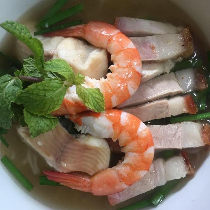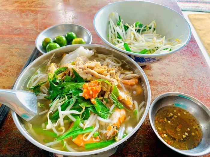 Illustrative ImageBún Nước Lèo Bà Xím claims the 7th spot on our list. Located at 45 Phú Lợi, it is a favored destination for noodle soup lovers in Sóc Trăng. The restaurant offers a spacious and clean environment with prompt and efficient service. A steaming bowl of Bún Nước Lèo Bà Xím is a symphony of fragrant lemongrass, golden broth, and a rich yet refreshing taste. The carefully prepared broth and smooth, resilient rice noodles create a harmonious blend. The soul of this Sóc Trăng specialty lies in the distinctive fish sauce made from bò hóc fish, a traditional Khmer delicacy. Accompanied by an array of fresh vegetables and three main ingredients – boiled snakehead fish, peeled shrimp, and crispy roasted pork – the dish promises a delightful culinary experience.