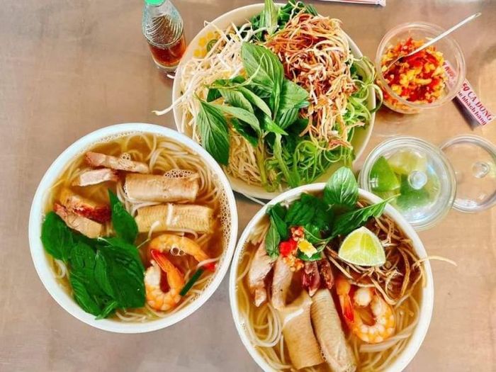 Situated in a spacious and tidy setting, with clean tables and chairs, Bún Nước Lèo Cô Hoa exudes a family-friendly atmosphere. The staff, comprising charming and friendly individuals, contribute to the pleasant dining experience. The menu features specialties such as fermented fish sauce noodles, soup noodles, and fresh spring rolls. The soup noodles are prepared according to the authentic Sóc Trăng style, where the key lies in the skillful preparation of the broth. The broth, considered the soul of the dish, is delicately flavored with the indispensable water celery.