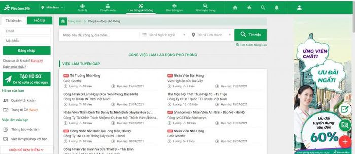 As the brainchild of 24h.com.vn, Vieclam24h benefits from strong support from its parent company. The website currently hosts over 1,500,000 candidate profiles, ranging from students/part-time jobs to skilled labor/professionals and managerial positions.