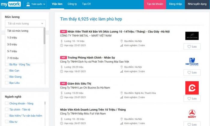 Mywork is a relatively stable job website, with a database containing over 4 million candidates, 1.5 million jobs, and nearly 800,000 employers. The services Mywork offers are quite diverse, such as posting job advertisements in prominent positions, banners, viewing resumes, etc., meeting the strict requirements of both recruiters and candidates.