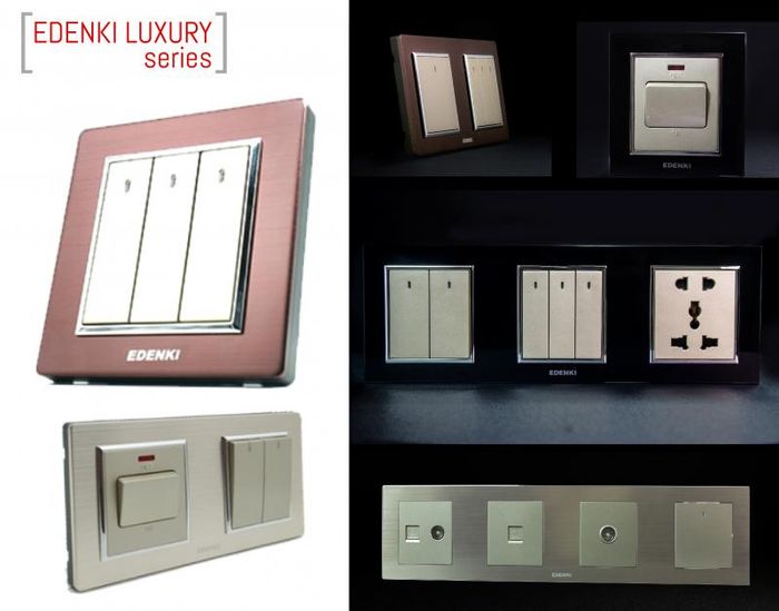 Edenki Luxury - EL series - is the highest-end line, with 5 different materials: PC plastic, black crystal glass, solid color aluminum in brown and champagne gold, scratched yellow aluminum. Sizes range from 1-4 modules. Suitable for installation in villas, high-end apartments, hotels, resorts...