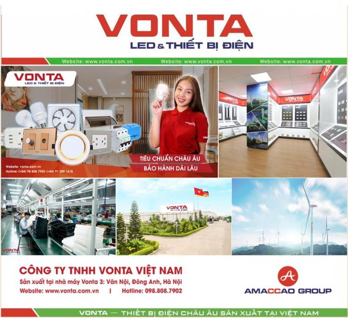 Call NowVONTA Vietnam Co., Ltd. is one of the leading representatives of domestic electrical and lighting brands with European-quality standards in Vietnam. It is invested and built by the AMACCAO Group in collaboration with top European experts in the fields of design, manufacturing, and industrial application. As a top manufacturer in the industry with diverse product types and designs, VONTA offers customers a wide range of choices for electrical and lighting products, making new constructions more luxurious, in line with the motto: 'VONTA - Bright Lights, Elegant Homes, Overflowing Happiness.'