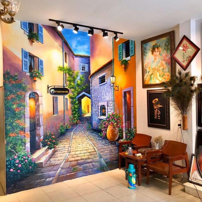 The murals created by the studio evoke artistic sensations. You will immerse yourself in a truly unique space thanks to the murals that 3D Wall Painting delivers. Each mural carries its own theme, significance, and style. Depending on your needs and preferences, you can request and discuss with the studio. 3D Wall Painting has created murals for various places such as bubble tea shops, gyms, coffee shops, seafood restaurants, bars, etc. The studio will provide attentive consultation and deliver truly exceptional mural services. Contact the studio directly for more information on services and prices via inbox or by calling the hotline.