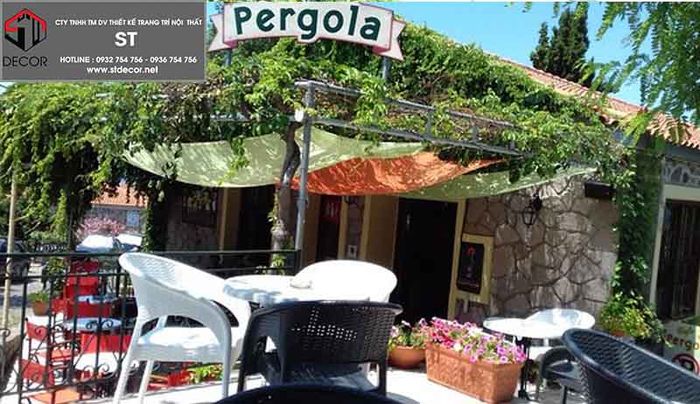 Pergola is the specialized name for flower pergolas, just hearing the name makes you easily imagine a beautiful and unique garden cafe design with flower pots. A small space full of lush climbing plants.