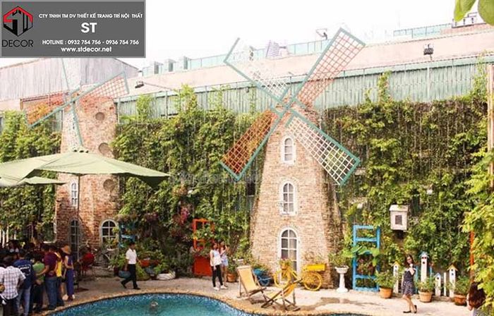 Beautiful garden cafe designs, romantic ambiance, various decorative scenes with brick walls, fans, paintings, ... evoke different feelings. Stepping into the cafe is like entering a miniature fairy world amidst everyday life.