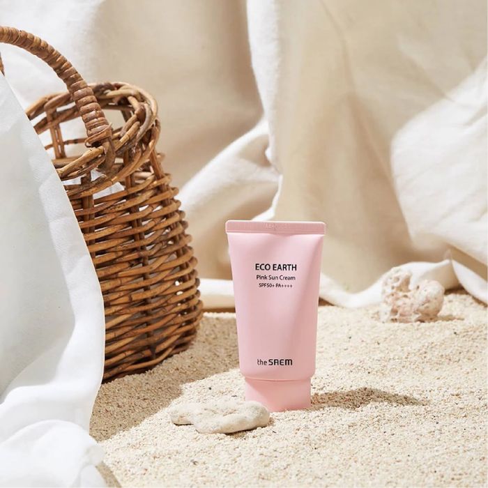 Therefore, using The Saem Eco Earth Power Pink Sun Cream for treatment skin not only shields the skin from sunlight but also moisturizes and quickly soothes the skin.