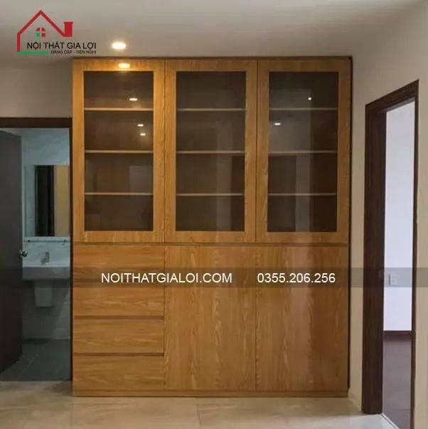Glass-door wooden wardrobes are one of the most favored choices today due to their modern look and the way they make rooms appear larger and more airy. Tâm Vĩnh Thái specializes in manufacturing and installing wardrobes made from both industrial and natural wood.