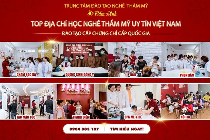 Cam Anh provides comprehensive hands-on training, unlimited revision and updates, 100% of the required tools and cosmetics, and post-graduation job placement assistance. After completing the program, graduates receive certificates accredited by the Vietnam General Department of Vocational Training and the Ministry of Labor, Invalids, and Social Affairs, ensuring they are equipped to work in beauty centers nationwide or even open their own beauty businesses such as spas, beauty salons, or clinics.