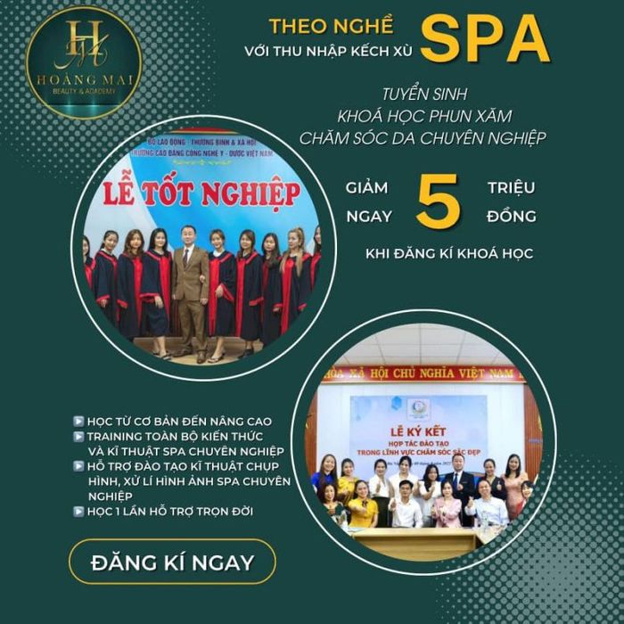 Hoang Mai Beauty & Academy is one of the most reputable spa training centers in Da Nang. With years of experience in the field, this academy offers high-quality courses designed to meet the educational and career development needs of its students. The faculty at Hoang Mai Beauty & Academy consists of top industry experts, bringing extensive knowledge and hands-on experience to the classroom. They provide students with the essential skills and expertise to become successful spa technicians.