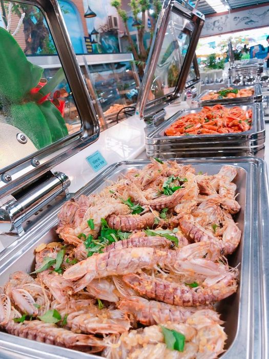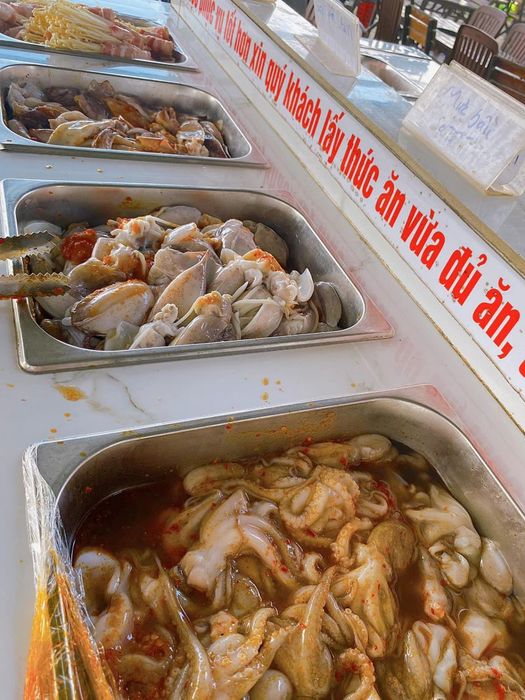 East Sea Seafood Buffet is located in Ninh Kieu District and is always bustling with people coming and going. The restaurant has indoor and outdoor spaces for you to enjoy dining. Although the design is simple, with small tables and chairs, it is always crowded with customers. Therefore, East Sea Seafood Buffet is listed among the most popular budget-friendly dining spots in Can Tho, providing a comfortable dining space for all guests.