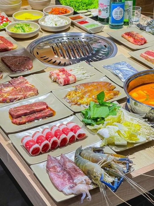 The menu includes various dishes such as American beef, pork belly, seafood, pork intestines, vegetables, and tofu. The meat is marinated in Korean style, flavorful but not boring. Moreover, the seafood here is fresh and delicious. With large grilling tables, the meat cooks quickly, tender, firm, and fragrant without being burnt. The restaurant has a clean, cool, and spacious atmosphere, decorated elegantly and brightly. The parking lot is very spacious, and the enthusiastic and friendly staff is also a prominent advantage that helps Korean Garden BBQ stand firmly in the hearts of customers. Once you try it, you'll want to come back! So, why wait? Hurry up and come here to enjoy the wonderful dishes!