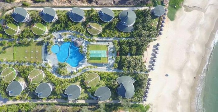 With a design deeply rooted in Vietnamese culture, featuring warm brown interiors that create a cozy and familiar atmosphere, Lotus Muine Resort & Spa is a 4-star resort offering 84 luxurious rooms with ocean views, surrounded by lush tropical gardens and a refreshing pool. The design maximizes the space for scenic views while ensuring a private and peaceful retreat for guests. The resort offers a wide variety of professional services, with high-quality, luxurious rooms and an array of entertainment and relaxation options such as a gym, spa, outdoor activities, beachside movie screenings, and windsurfing, all set against the backdrop of the cool sea breeze.