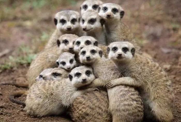 Meerkats also take turns looking after the young ones in the group. Females that have not yet reproduced often take care of the dominant pair’s offspring, while the dominant female remains apart from the rest of the group. They also protect the youngsters from harm, especially when their instincts aren't fully developed. In the event of a threat, adult meerkats prepare safe spots for the young, and if retreating to their burrows isn't possible, they gather the young together and shield their heads with their bodies.