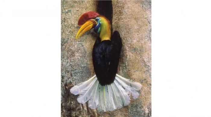 The red-crested hornbill is native to Sulawesi Island in Indonesia, where it nests and lays its eggs in tree hollows. After laying her eggs, the mother bird seals herself inside the nest for a continuous two months, never leaving to forage for food, despite being very hungry.