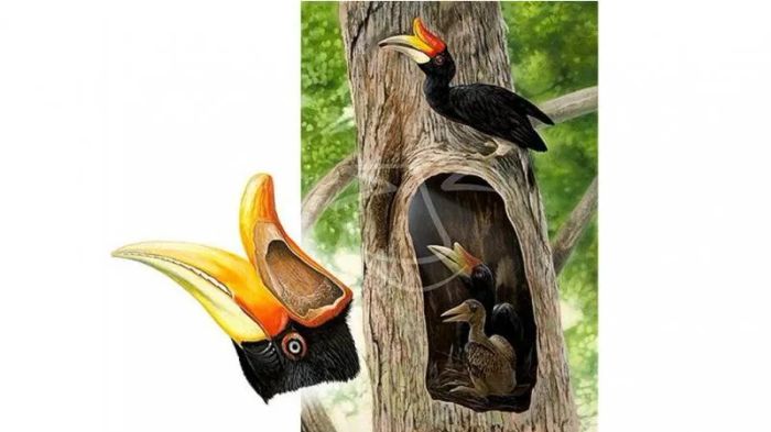 During this period, the mother hornbill uses her feces to block the entrance of the nest, keeping predators away.