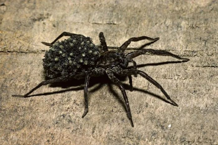 No creature dares to threaten a mother wolf spider guarding her egg sac. She is fiercely protective and will fiercely defend her eggs, which are attached to her spinnerets. Once the eggs hatch, hundreds of tiny spiderlings climb onto her back, where she carries them for several days, ensuring their safety until they are mature enough to move on their own.