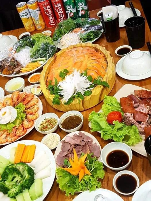 Truc May Restaurant has earned numerous 5-star reviews thanks to its excellent service, delicious food, and convenient location. At Truc May Restaurant, the chickens are carefully selected from local farms, cleaned, and prepared using perfect recipes, ensuring fresh, flavorful, and tender chicken dishes. Aside from the top-notch grilled chicken, the chicken platter is also a favorite among guests. Each piece of chicken is golden-brown, crispy, tender, and juicy, served with a unique seasoning that will surely leave you craving more.