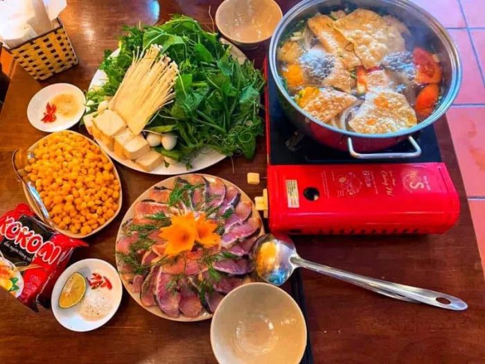 The Thai hotpot at A Phu Sapa is loaded with all the right ingredients and has a tasty, easy-to-eat broth. The Hue beef hotpot is a bit spicy, but the broth is incredibly flavorful. The ingredients are fresh and plentiful, and the prices are reasonable. In addition to hotpots, the restaurant also serves dishes like grilled pork ribs with rice, mixed fried rice, bun dau mam tom (fermented shrimp paste noodle), pizza, and a variety of drinks. The staff is very friendly, and the restaurant offers a beautiful view. On cold winter days, it's the perfect spot to hang out with friends.
