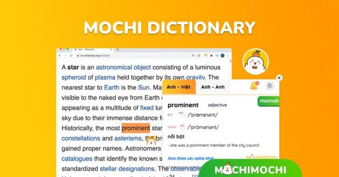 Mochi Dictionary is a relatively new English vocabulary learning website. The website's interface is very cute, like a motivational tool to help us study. You can even directly add the website to the Chrome toolbar on your computer, allowing you to quickly and easily look up bilingual English-Vietnamese words.