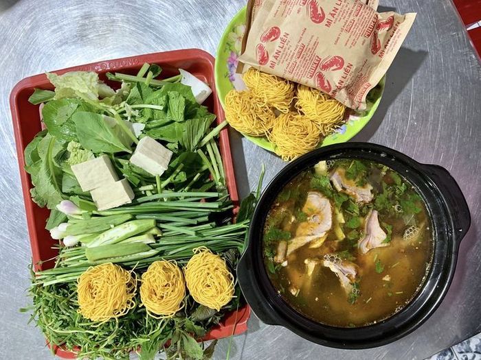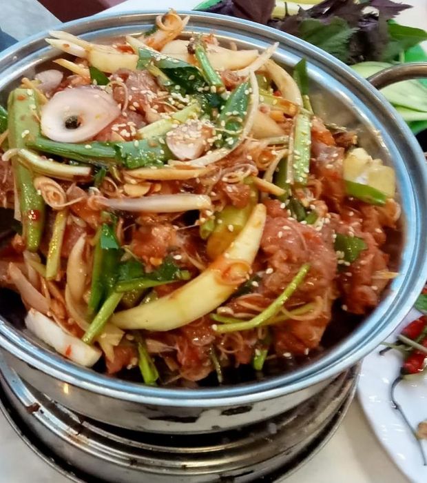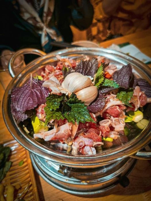 Mã Yên Restaurant has received many compliments from guests not only for its delicious, tender, and sweet goat meat, which is skillfully prepared to avoid any strong odors and excess fat. A must-try dish here is the goat skin wrapped in perilla leaves and dipped in shrimp paste, which is incredibly flavorful. Additionally, the roasted goat with skin intact is another crowd-pleaser. The signature goat hotpot, infused with Chinese herbs and cooked on a special red-hot stove, is also highly recommended.