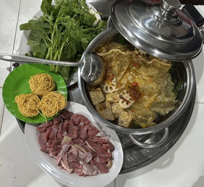 Sơn Dương Goat Hotpot specializes in a variety of dishes made from goat meat, offering a diverse and rich menu. The standout dish here is their famous goat hotpot. With a team of skilled chefs, the restaurant delivers a distinctive flavor. The goat meat is expertly marinated with aromatic spices, ensuring there is no unpleasant odor. The hotpot base is light and savory, simmered with aromatic herbs and bones, while the broth combines the essence of bone stock and various mushrooms for a wonderfully clean and sweet taste.