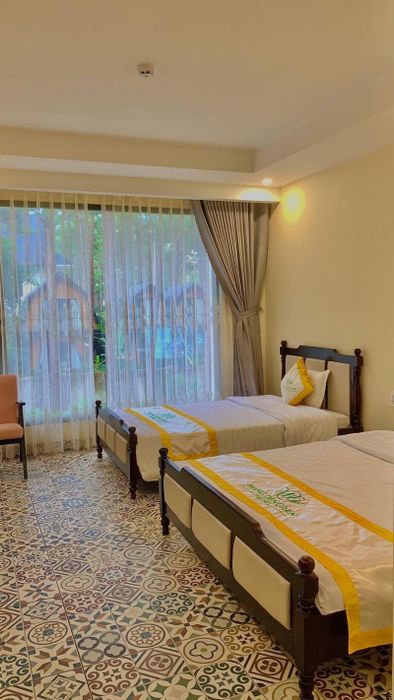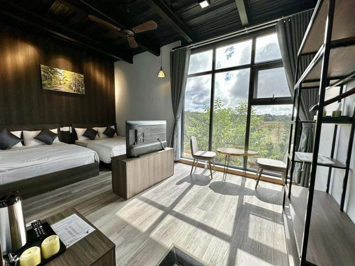 Mountain Lodge Hotel combines modern and classic European design, creating a relaxing and enchanting environment. Here, guests can enjoy peaceful moments, breathe in the fresh air of Măng Đen's pine forests, and listen to the tranquil symphony of nature. The rooms are well-equipped with amenities such as en-suite bathrooms, toilets, bathtubs, air conditioning, hot water, hairdryers, and kettles. Room prices range from 900,000 VND per night for a single room to 1,100,000 VND per night for a single room with a bathtub and a forest-view balcony. For adventurers and young travelers seeking new experiences, Mountain Lodge Hotel is an ideal stopping point.
