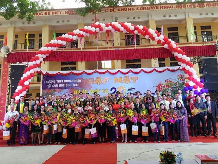 From 1993 to the present, Khoái Châu High School has continually expanded in scale, quality, teaching staff, and facilities for teaching and learning. The current number of students (2020) is 2,235 across 58 classes, and the school employs 133 teachers and staff. The teaching staff is fully qualified, with 100% meeting or exceeding the standards. Therefore, the school's tradition of effective teaching is consistently maintained and enhanced. Many teachers have received high honors such as exemplary soldiers, provincial-level excellent teachers, etc.