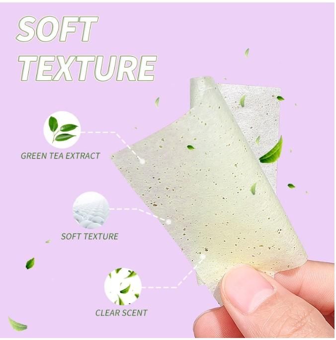 - The soft and skin-friendly 9 cm oil-absorbing sheet is suitable for wiping the entire face with tissue.