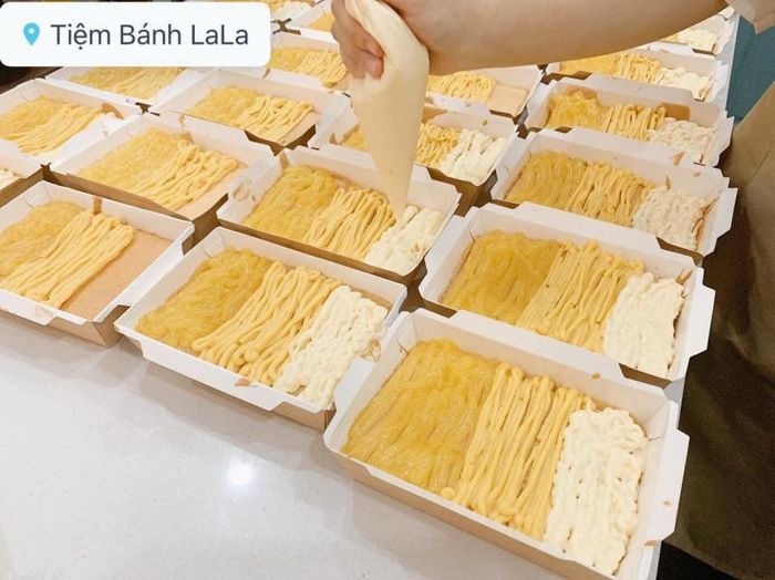 The cheese sponge cakes here have a deliciously fragrant aroma, with the sponge part being soft and just the right level of moistness. The cheese filling is rich and abundant, providing the perfect creamy texture and flavor. The cakes are always baked to perfection, soft yet not too dry or burnt, and when you take a bite, the cheese oozes out in a deliciously indulgent way. Tiệm Bánh LaLa offers both in-store purchases and delivery, so if you don’t feel like leaving the house, just call and they’ll take care of the rest.