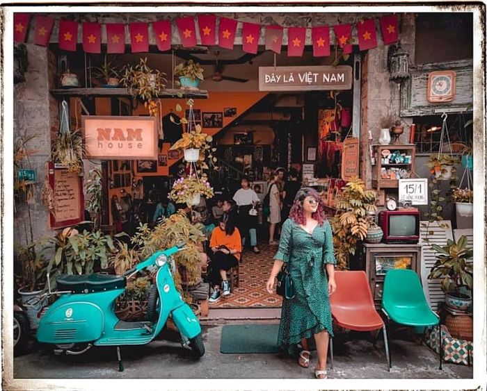 Nam House is a quaint little café tucked away in an alley on Lê Hồng Phong Street in Da Nang. Housed in an old building, the café exudes a nostalgic charm for those who visit. The interior is decorated in a classic style, featuring a variety of vintage items like old tables, chairs, cupboards, radios, and televisions. From the layout to the lighting, everything here takes you back to Vietnam in the 90s.