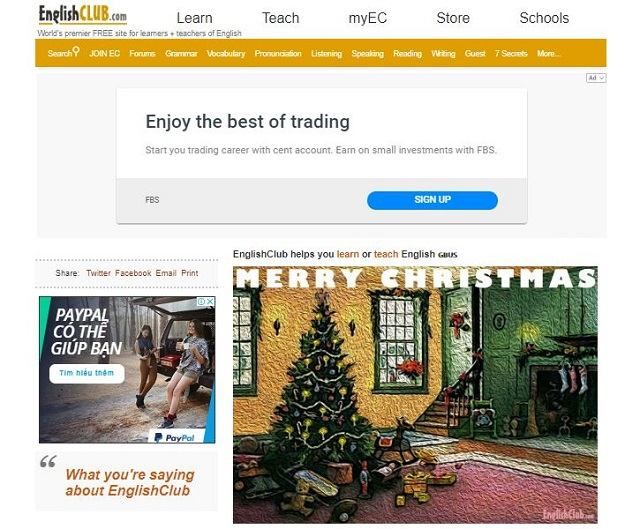 English Club is a free website designed to help users learn English online anytime, anywhere. Here, the website will provide you with: