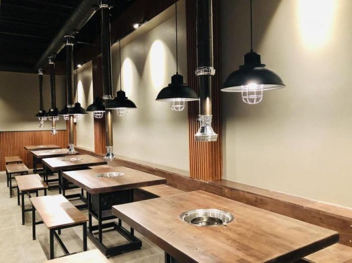 BBQ Garden - Smokeless BBQ Hotpot features a cozy, dark-toned atmosphere with simple decor, making it a favorite gathering spot for many diners. The restaurant offers private rooms that can accommodate groups from 2 to 20 people. With its warm, wooden interiors, yellow lighting, and spacious design, BBQ Garden is perfect for casual hangouts, family reunions, or even romantic dinners.