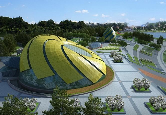 Da Lat is home to unique symbols that have come to define the city. Beyond its historical landmarks and natural beauty, modern structures have also become symbols of Da Lat’s charm. Among these are the iconic Dã Quỳ flower and the Artichoke flower, located at the Lâm Viên Square. These structures, with their striking architecture and massive scale, have become essential spots for tourists. Lâm Viên Square itself, often referred to as the heart of the city, is a remarkable project with a budget of 681 billion VND and took six years to complete. Since its opening, it has consistently attracted tourists who come to admire its famous landmarks. The square offers a variety of recreational spaces and overlooks the romantic Xuân Hương Lake, with its refreshing atmosphere that blends beautifully with the surrounding greenery. The Artichoke flower structure, designed to mimic the iconic local vegetable, stands 15 meters tall and houses a unique café. The outer surface is adorned with green and yellow glass panels that twist upward, creating a fascinating visual effect.