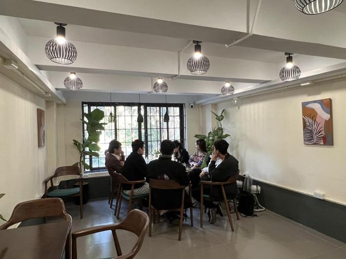 CallFour Seasons Tea Shop is located near the Hoang Cau – O Cho Dua intersection, distinguished by its white walls and wooden glass door, making it easy to identify. The space here is relatively spacious, with tables and chairs arranged far apart for maximum comfort. The ground floor even has cozy sofas, while the second floor features long tables perfect for group studying or working.