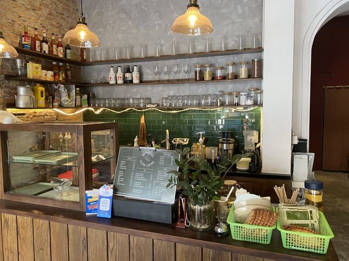 Olive Café & Bakery is located in Alley 9 on Hoang Cau Street – an alley known for its bustling clothing and accessory shops. The café boasts three cozy floors, not overly spacious. Its most valuable asset is its high-quality storefront, perfect for OOTD shots. Inside, the café is designed with a slightly vintage touch, featuring wooden tones combined with gray.