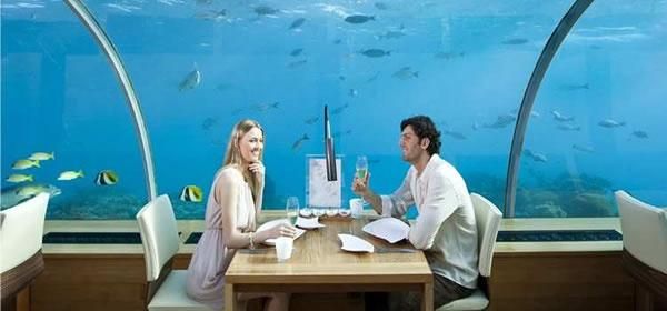 The Ithaa Restaurant, located on Rangali Island in the Maldives, is one of the most unique dining experiences in the world. Situated 5 meters below sea level, this underwater restaurant features a dome-shaped structure that offers diners a breathtaking 180-degree view of the ocean. Guests can enjoy their meal while watching the vibrant marine life swim right next to them, creating an unforgettable experience.