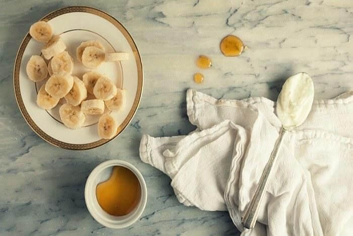 - Mash a ripe banana, mix it thoroughly with 2 tablespoons of unsweetened yogurt and 2 tablespoons of pure honey
