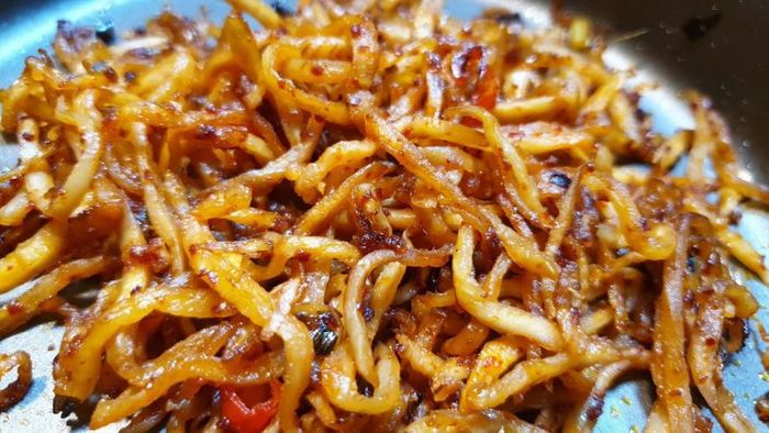 Due to being processed from seasonal rice flour, the cake thread is very fragrant, chewy, and manually sliced, so the cake thread is rough and creates an interesting feeling when chewed. The uniqueness here also lies in the presence of meatballs in the style of Chinese cuisine (Chaozhou). To make delicious meatballs, people use pork belly and liver finely chopped with squeezed turnip. Mix this mixture with sugar, garlic, fried onions, pepper, and a little flour, a little MSG. Steam each large ball in a steamer until cooked. In addition, Ngan Dua Tapioca Cake is even more flavorful with the combination of soft, silky skin, sweetened with sugar and MSG for deliciousness.