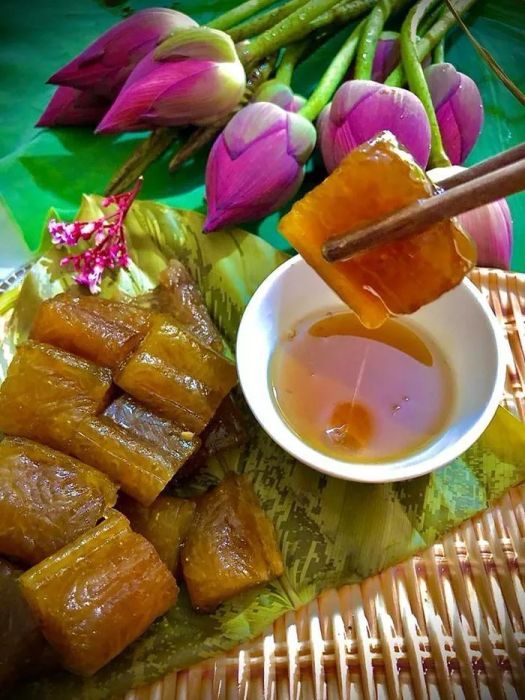 The Chinese-style dumplings, sui cao, come with a variety of fillings to suit every taste, including pork, beef, shrimp, chicken, and even vegetables. They are shaped in different ways and have a unique, delicious flavor. For this reason, the Hoa people traditionally eat dumplings during the year-end meal, as they believe it brings good luck for the coming year. Additionally, the kho nhuc, a braised pork dish, has a melt-in-your-mouth texture. The blend of spices in this dish makes it a favorite during festive gatherings. This dish is often served to honor visitors from afar, making it a popular choice for family reunions during Tet.