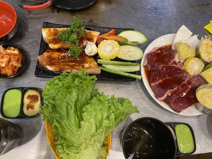 The main dish at the restaurant is the hot pot grill, a different and enjoyable way of cooking hot pot. Diners can personally grill various meats, seafood, and vegetables on the charcoal or electric grill at their table. The meats, seafood, and vegetables are prepared fresh and cut into small pieces, adding highlights to the meal. After grilling to perfection, diners can enjoy them with a variety of sauces and condiments.