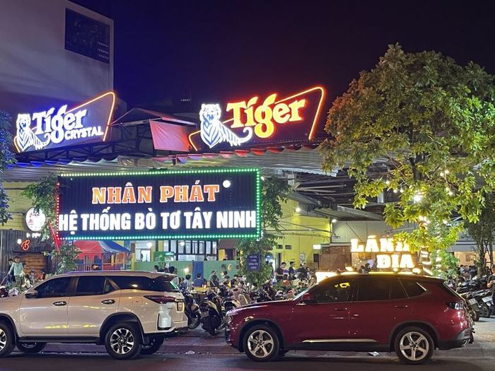 Nhan Phat Beef Hotpot offers a diverse menu, with nearly 200 dishes made from beef. The famous dish is the beef tail hotpot made from beef. 'Better to eat 1 piece of young beef than 1kg of old beef' is not wrong, the quality of the beef here is always top-notch, the whole piece of beef is big and tender. The beef hotpot broth is also seasoned to taste just right, with a variety of accompanying vegetables both plentiful and high-quality. In addition, the restaurant also has grilled beef, which is also loved by many diners. Placed on the sizzling grill, the aroma is intoxicating, the beef is super tender and sweet, it's mesmerizing to eat.