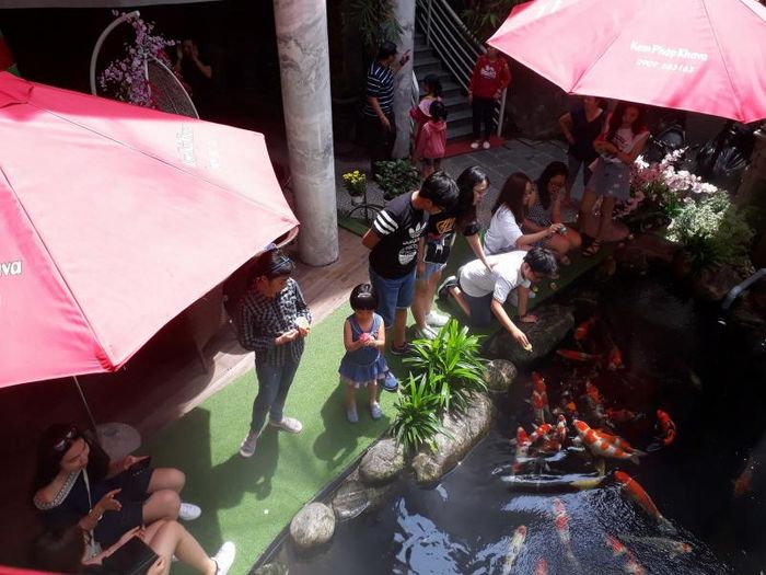 Located in a quiet corner of District 11, Mimosa Coffee is a popular koi coffee shop in Ho Chi Minh City, beloved by many young people. The café features a spacious and airy layout. The outdoor area is particularly impressive with a unique koi pond, where the koi fish come in vibrant colors and are quite plump. Kids visiting the café are sure to be delighted. In addition to the open-air space, the café also boasts a beautifully landscaped garden with misting systems, as well as air-conditioned rooms and live music performances. Whether you're here for a casual drink or a meal, Mimosa offers a wide variety of dishes from breakfast to dinner, including delicious office-style rice meals.